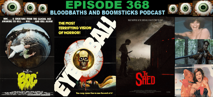 This week we come back with a grudge and bring with us 3 more flicks of varying quality.  First a movie Kyle has always wanted to see but avoided in the mom and pop video store days in THE BOG.  Then we go to Italy to check out a Giallo flick that John picked out in EYEBALL.  And finally Tim chats about a fine independent flick in THE SHED.  Also we have a long chat about how we would make a sequel to Schindler’s List,  Regional food that we ate growing up being poor kids, and whatever else nonsense comes dribbling outta our mouths.  We also chat about what we have been watching, and we answer your listener question.  So download this episode or Charles Band will continue to make bad movies and burn all your monies.